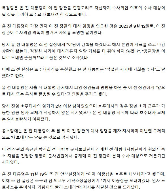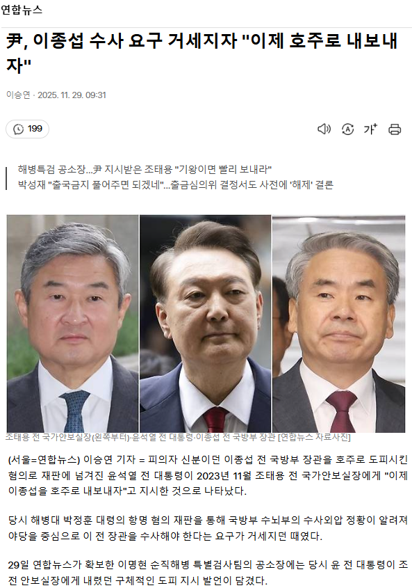 尹, 이종섭 수사 요구 거세지자 "이제 호주로 내보내자"