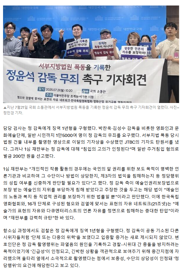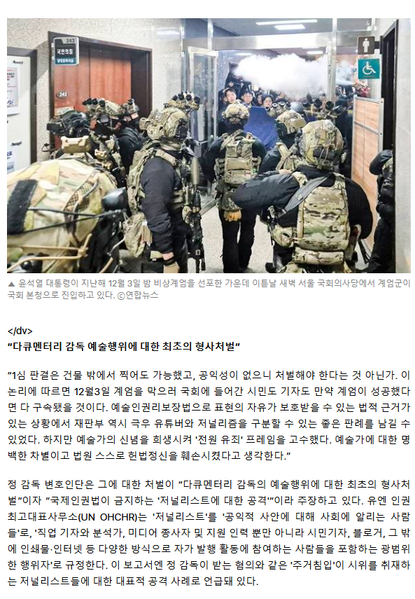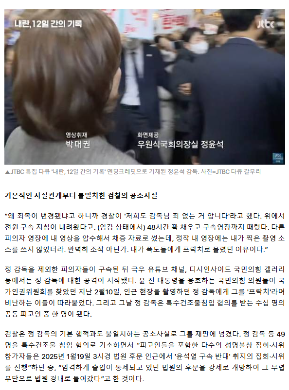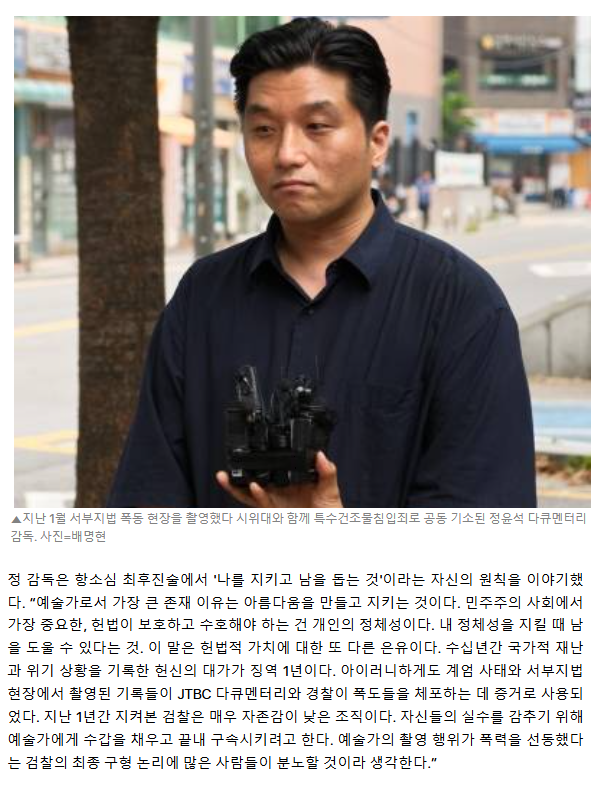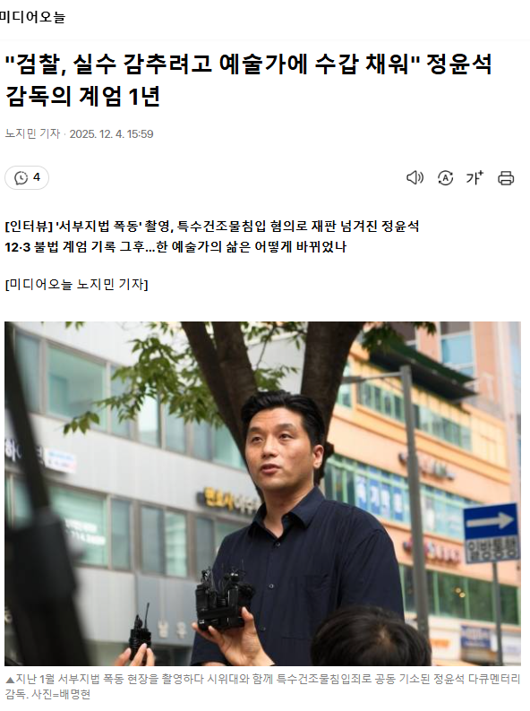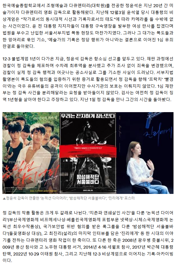 "검찰, 실수 감추려고 예술가에 수갑 채워" 정윤석 감독의 계엄 1년