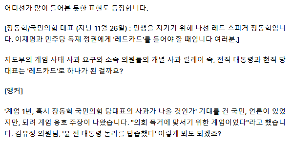 '계엄 1년' 동시에 외친 "레드카드"… 윤석열 판박이 장동혁 ㅡ멍멍이 소리하는 동혁