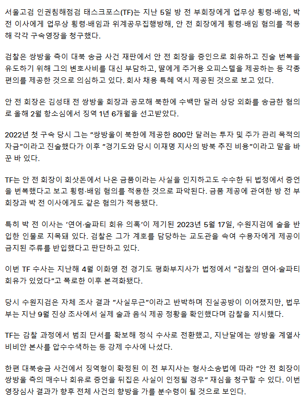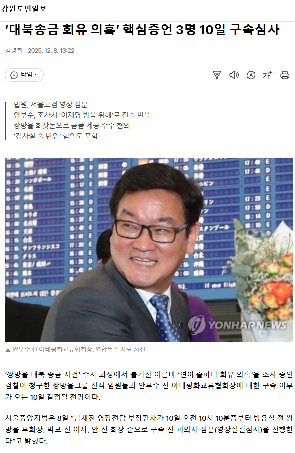 ‘대북송금 회유 의혹’ 핵심증언 3명 10일 구속심사 ㅡ 안부수, 쌍방울 전직 임원 2명