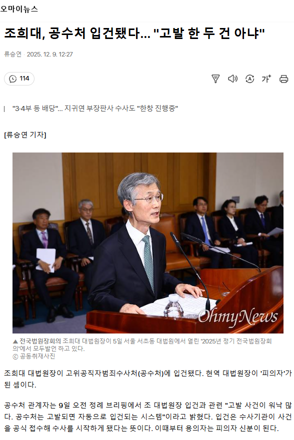 조희대, 공수처 입건됐다... "고발 한 두 건 아냐" ㅡ 조희대를 파면하고 구속하라