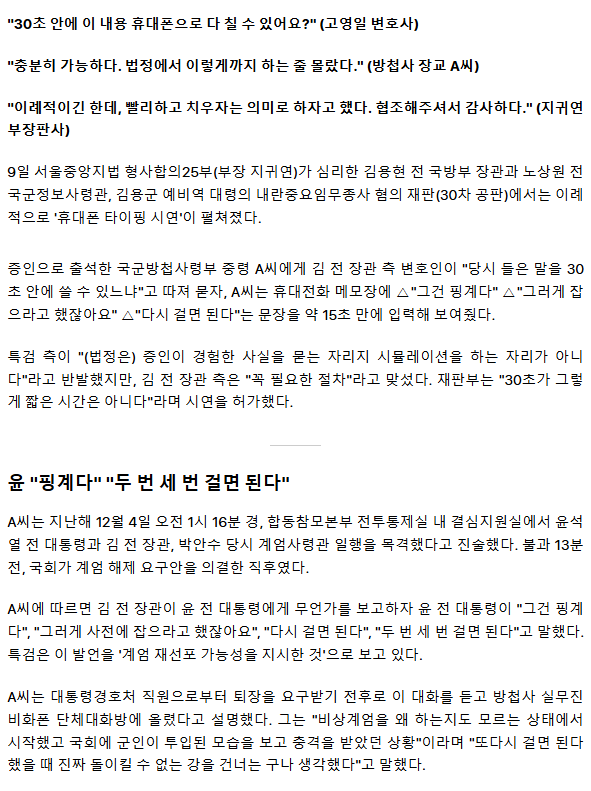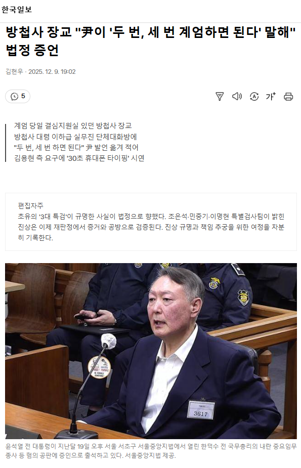 방첩사 장교 "尹이 '두 번, 세 번 계엄하면 된다' 말해" 법정 증언