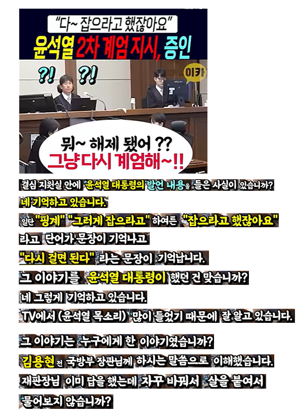 윤석열, 2차계엄 증인 등장~!!, 난리난 윤석열, 김용현 변호사들~!! ㅡ 2차 3차 계엄하면 돼