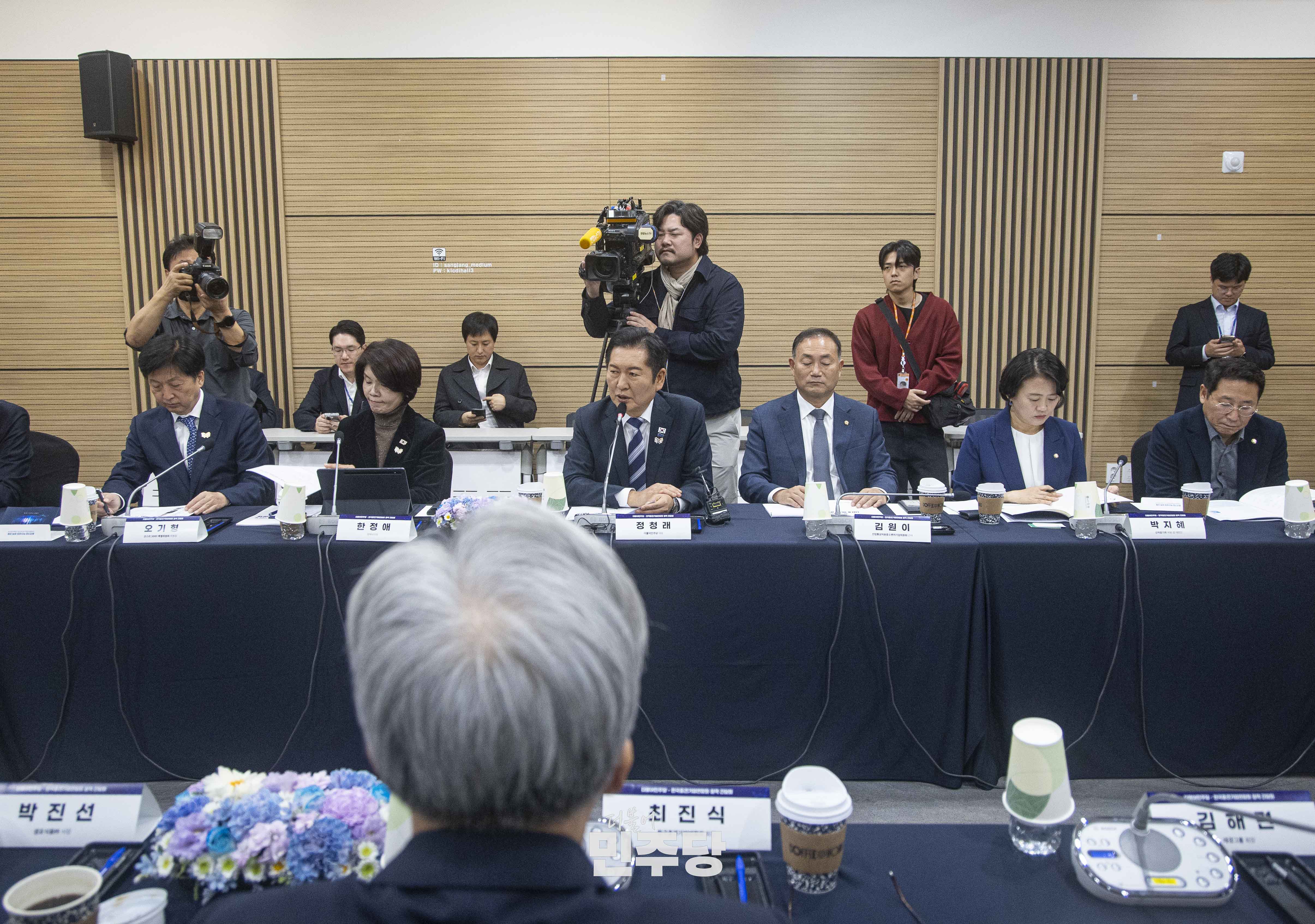정청래 당대표가 2025.10.30.(목) 국회 본청 당대표회의실에서 12.29 여객기참사 유가족협의회와 면담을 하고 있다.