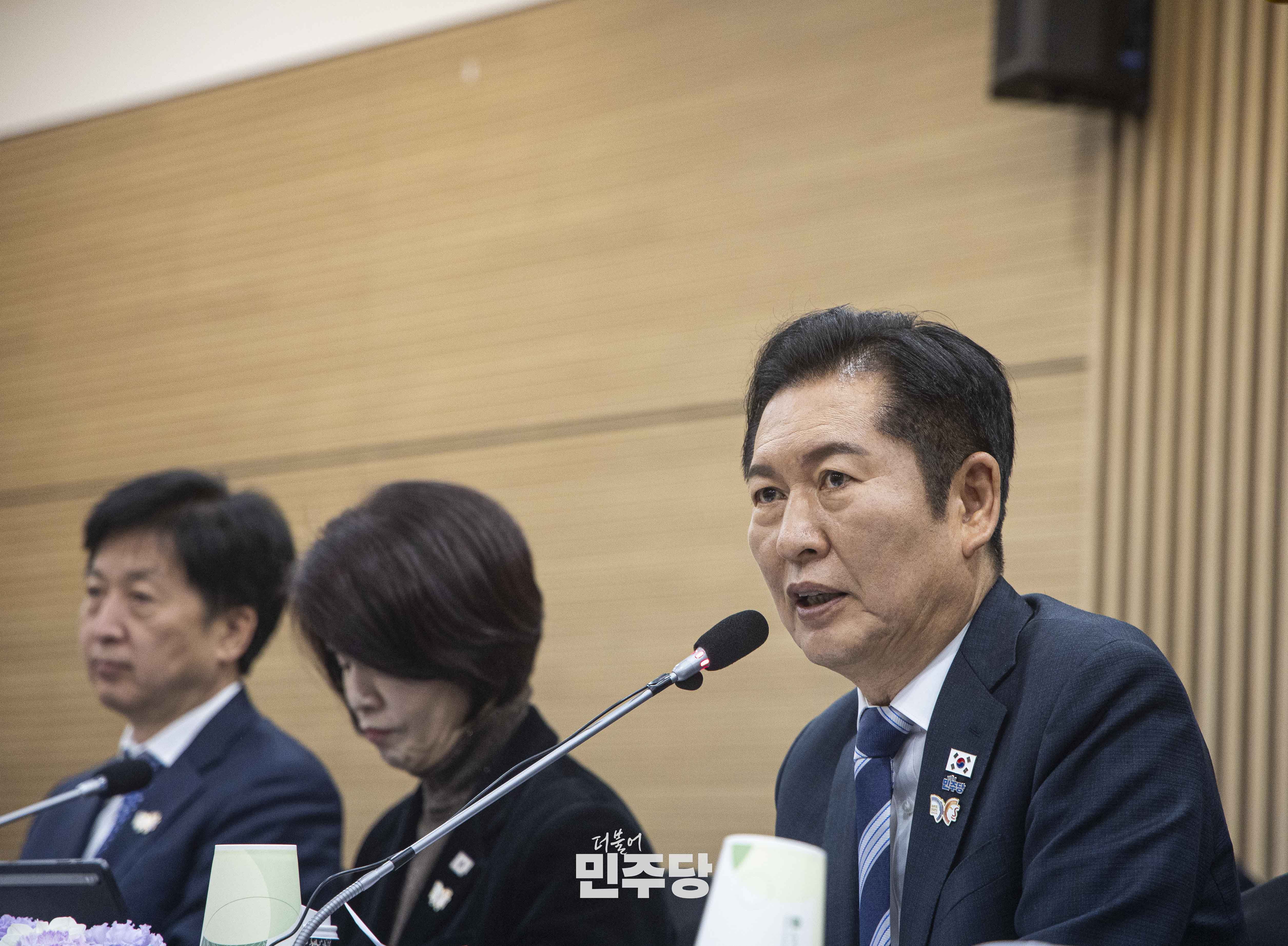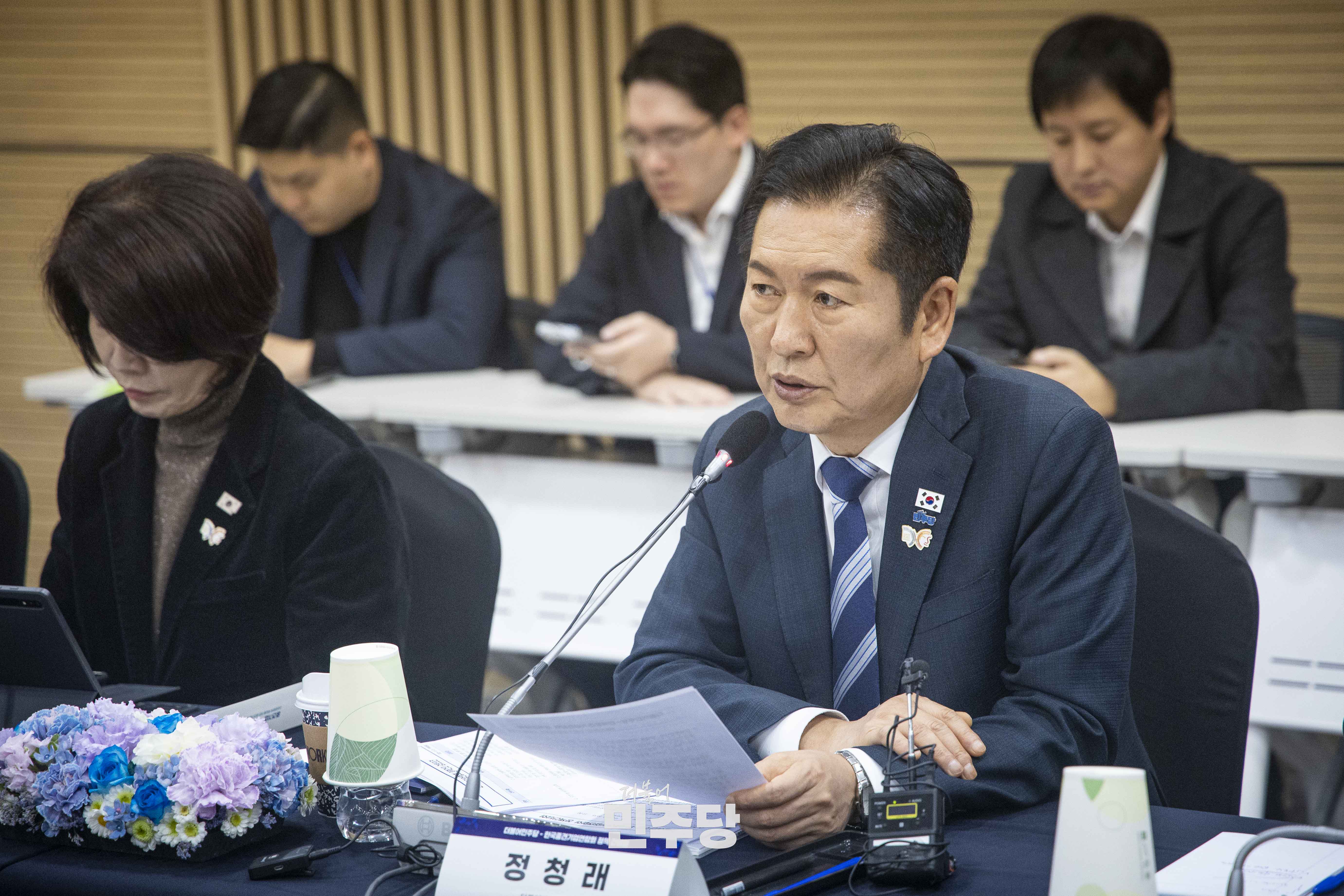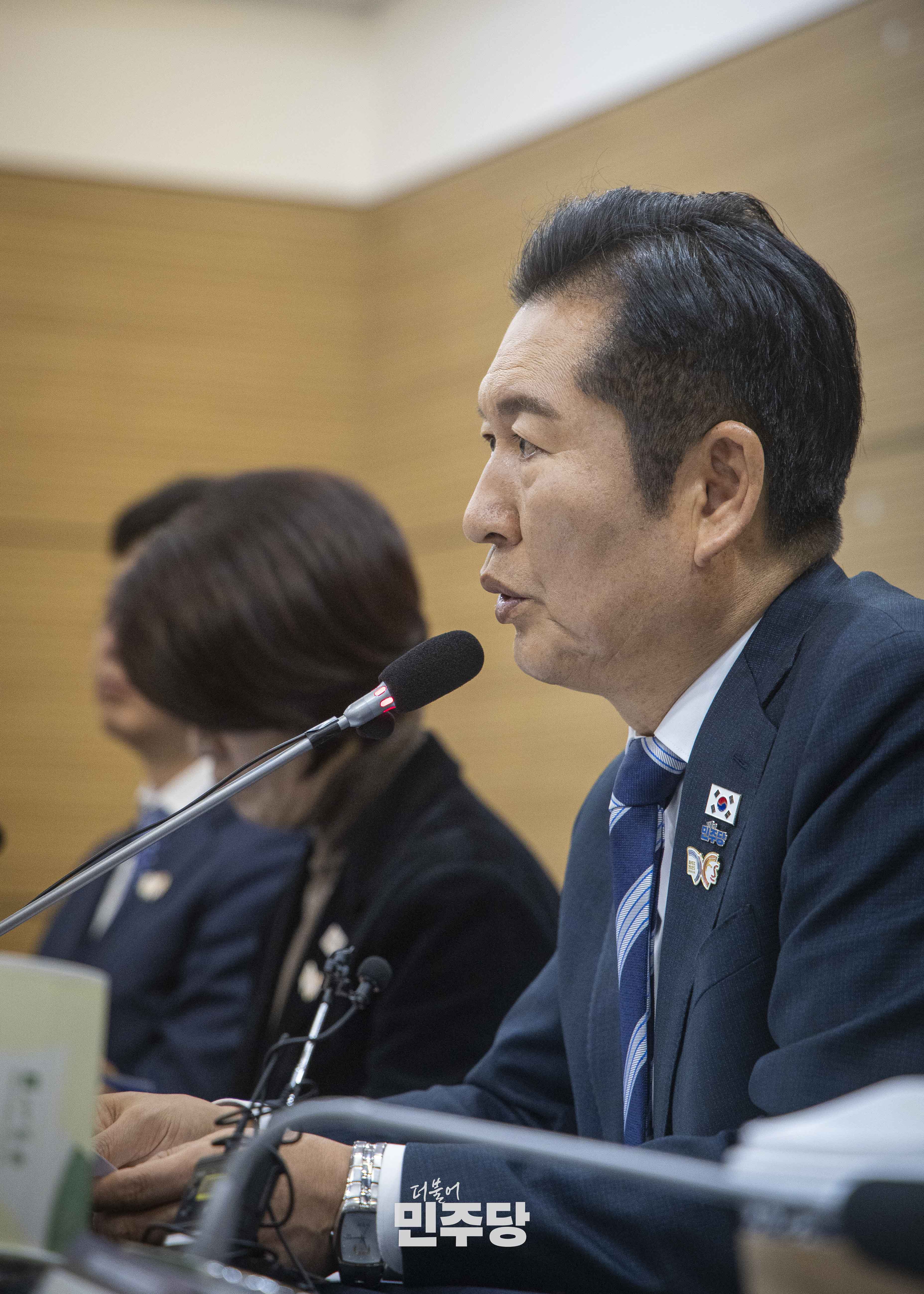 정청래 당대표가 2025.10.15.(수) 국회 본청 당대표회의실에서 진행된 10.29 이태원 참사 유가족 대표단 면담에 참석하여 모두발언을 하고 있다.
