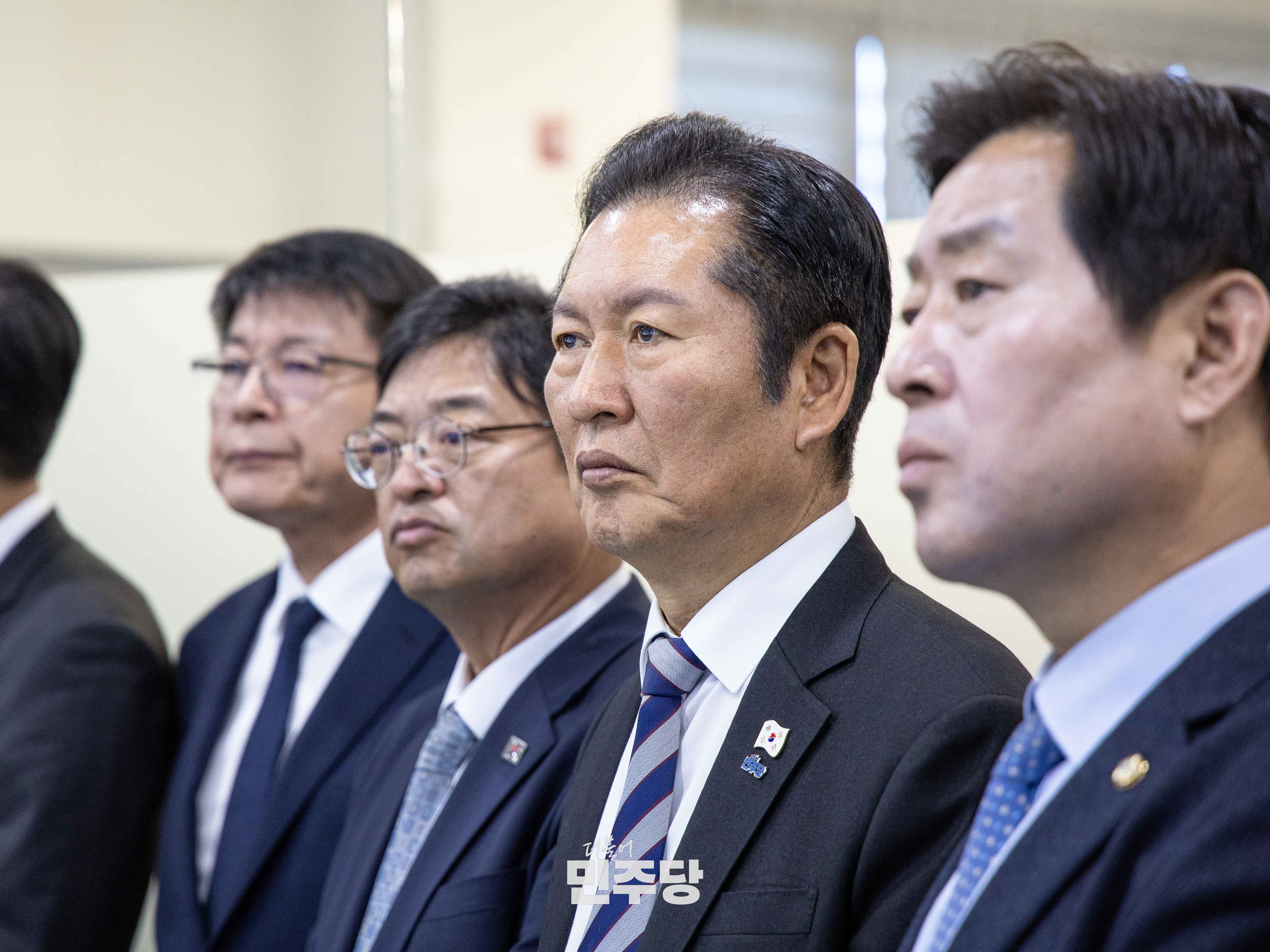 정청래 당대표가 2025.11.25.(화) 여의도에 위치한 한국노총에서 열린 한국노총-더불어민주당 2차 고위급정책협의회에 참석하여 기념촬영을 하고 있다.