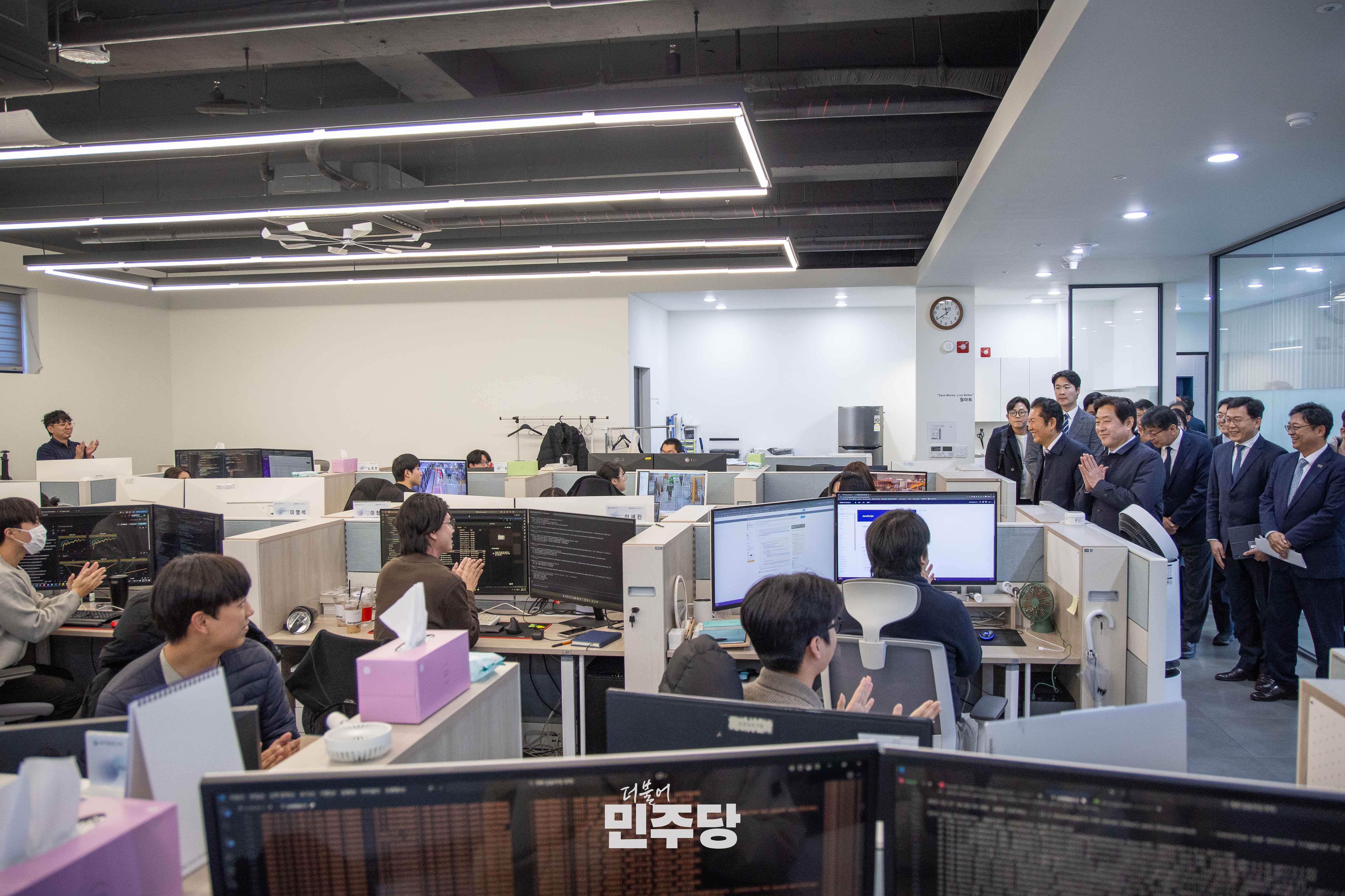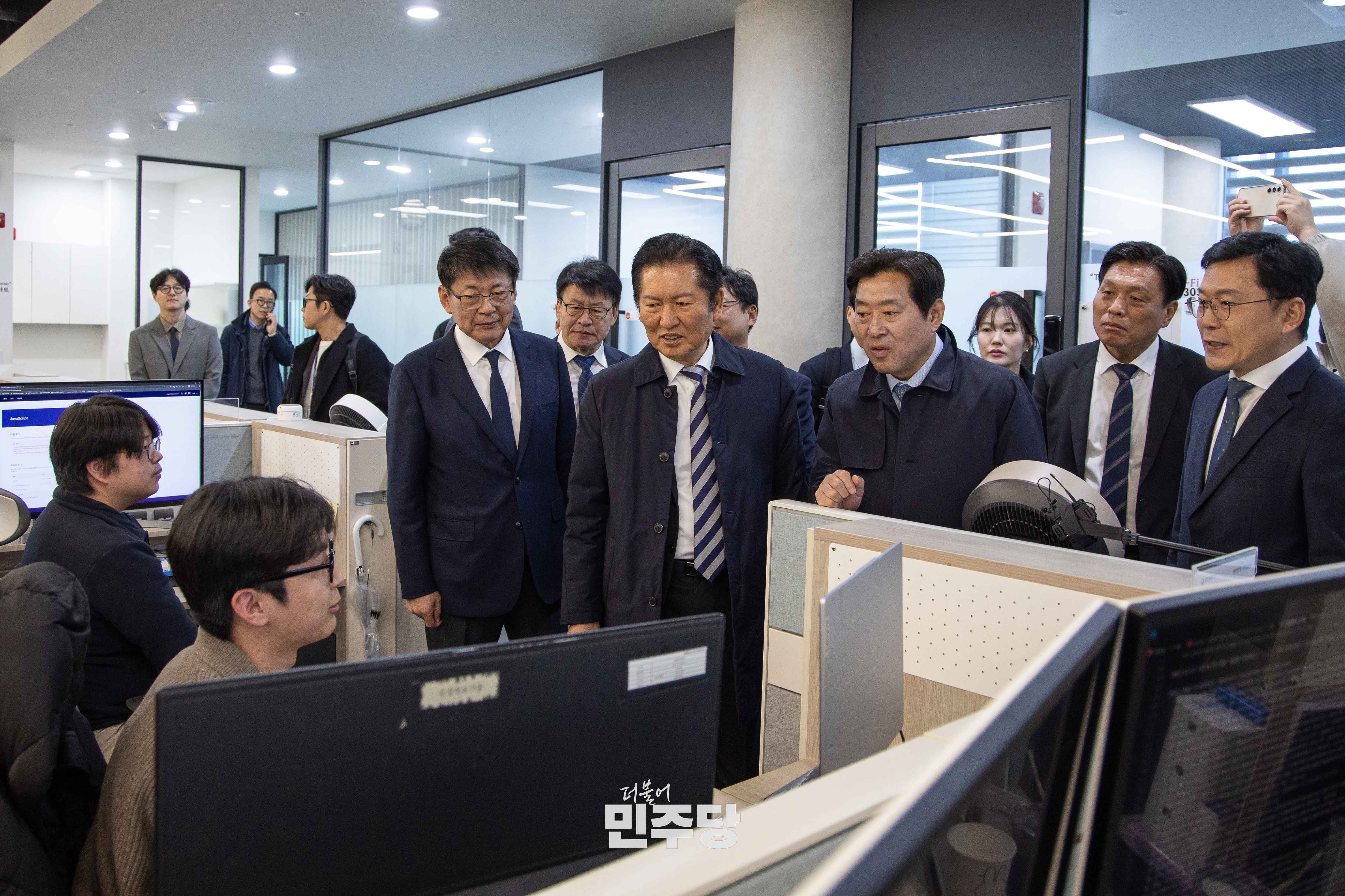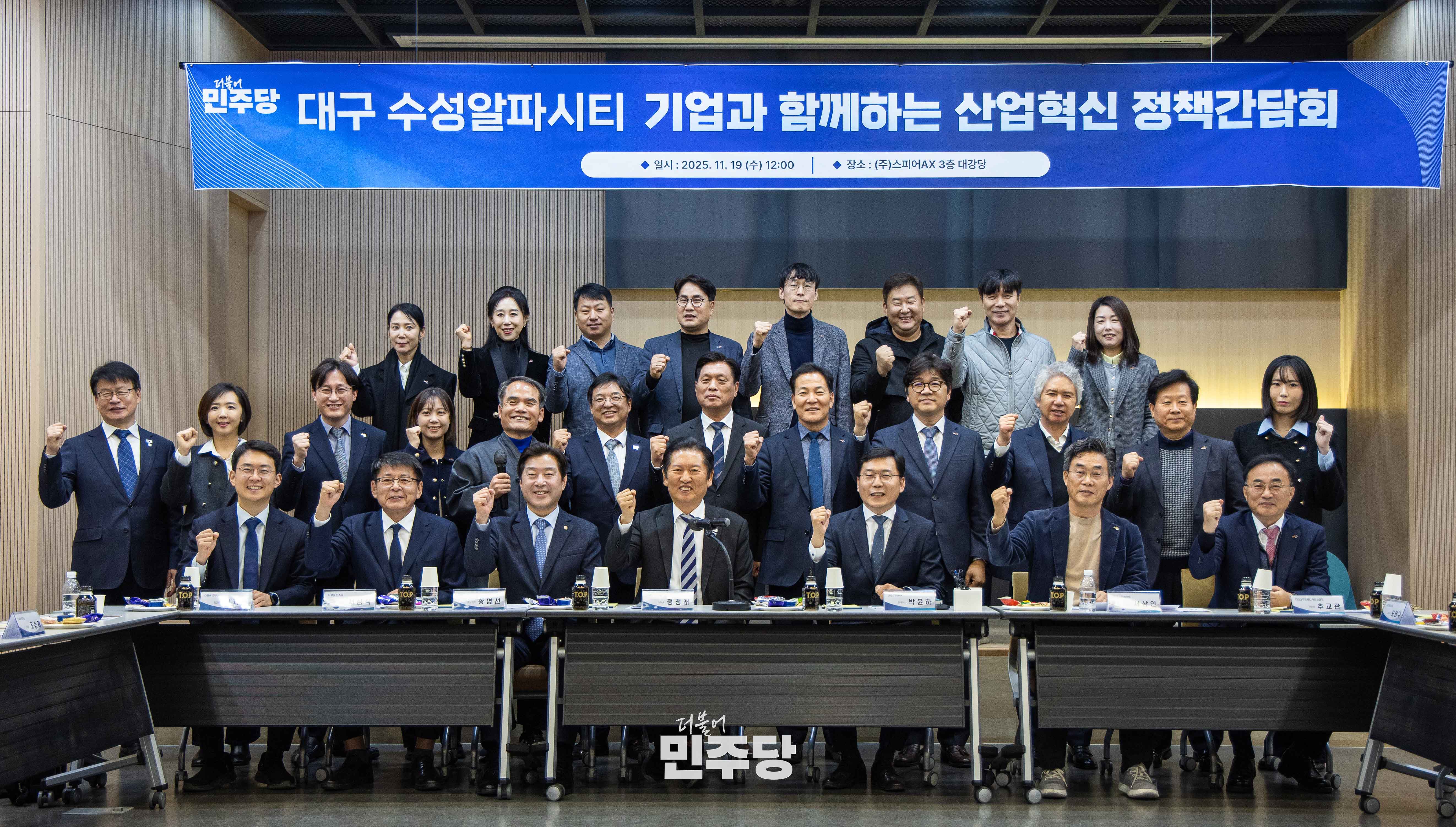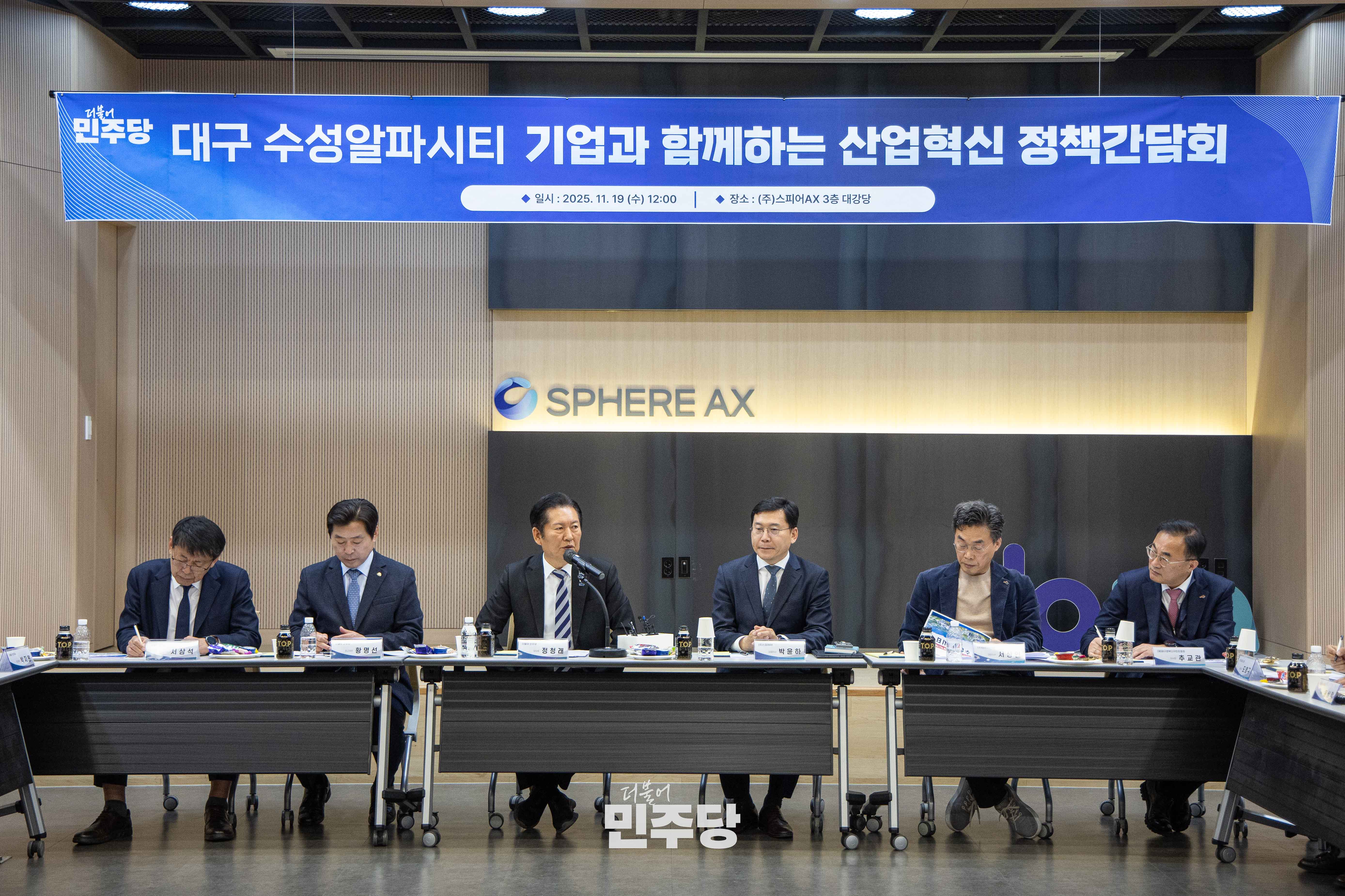 정청래 당대표가 2025.11.19.(수) 대구광역시 수성구에 위치한 수성알파시티에 기업 현장을 방문하고 간담회를 하고 있다.