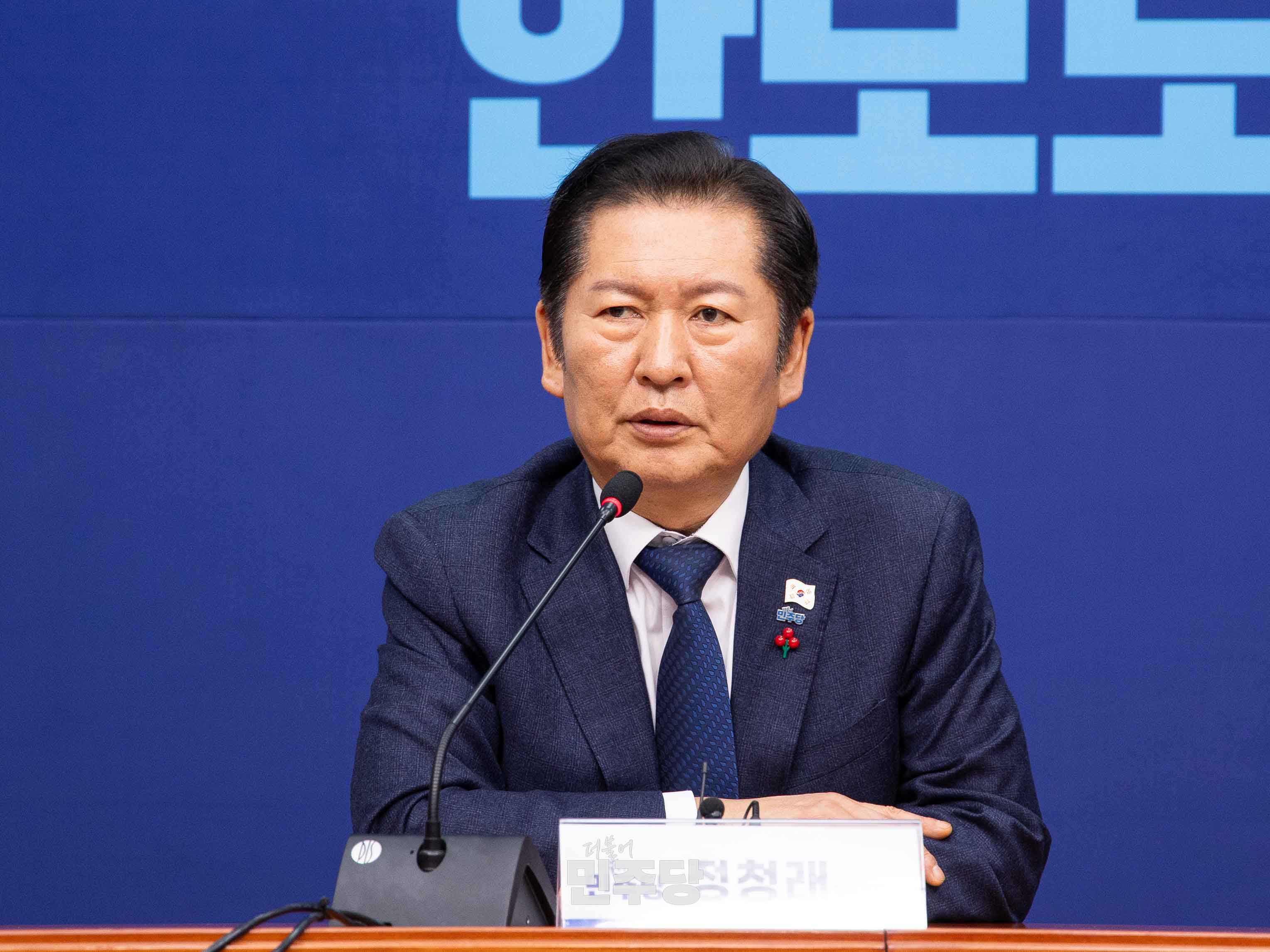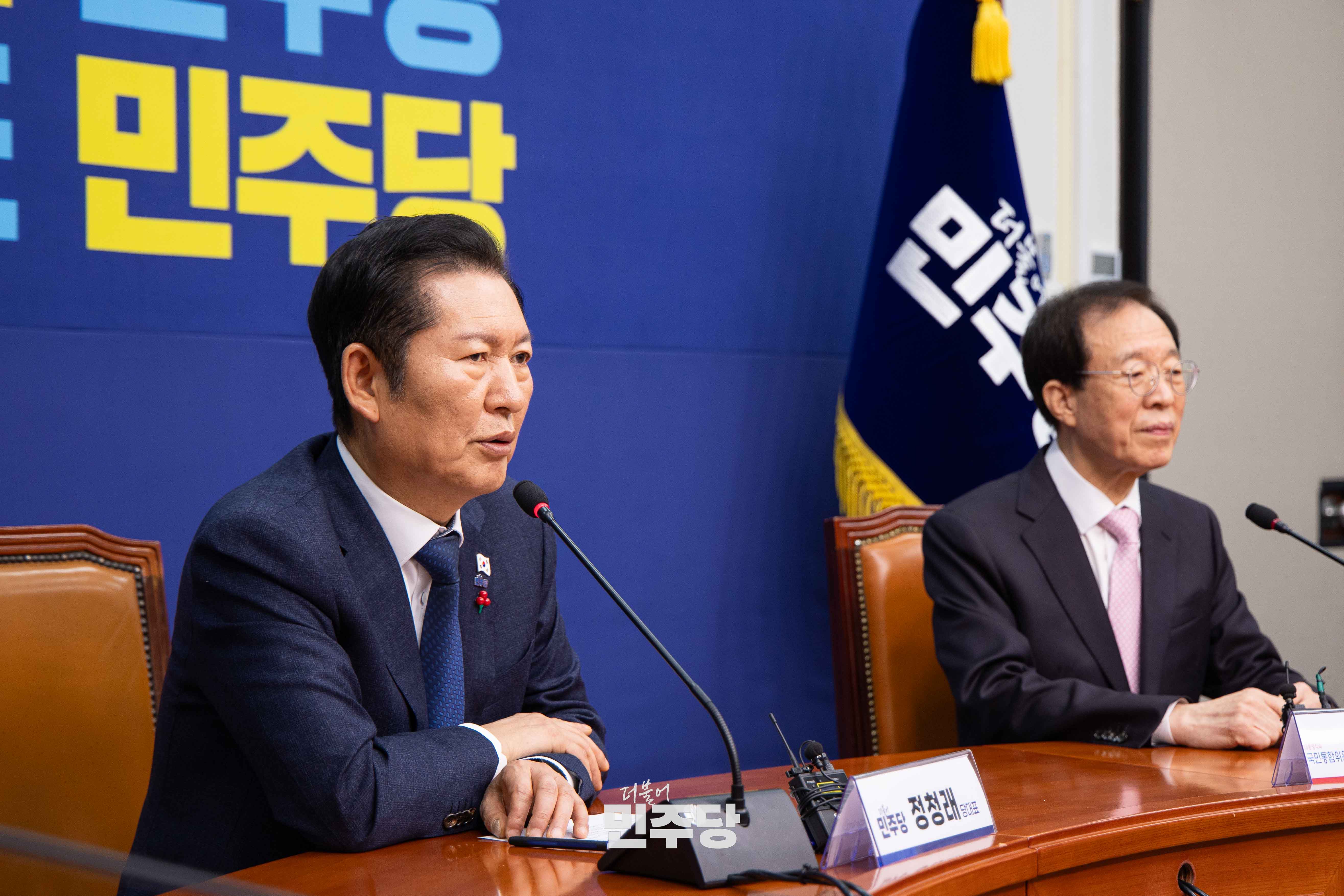 정청래 당대표가 2025.12.03.(수) 국회 의원회관 대회의실에서 열린 12.3 비상계엄 1년 특별좌담회 행동하는 K-민주주의에 참석하여 좌담회를 하고 있다.