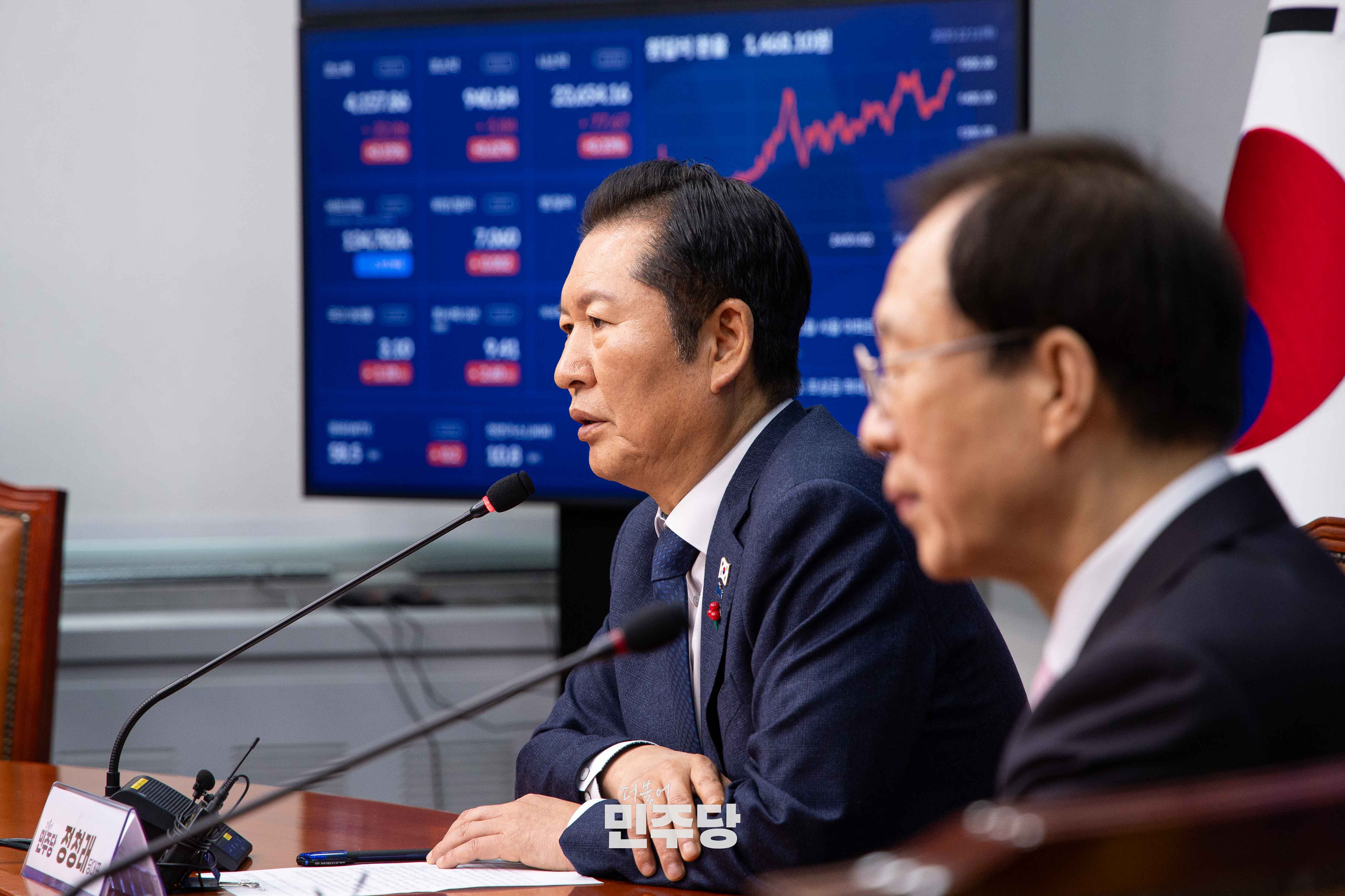 정청래 당대표가 2025.12.08.(월) 국회 본청 당대표회의실에서 열린 최고위원회의에 참석하여 모두발언을 하고 있다.