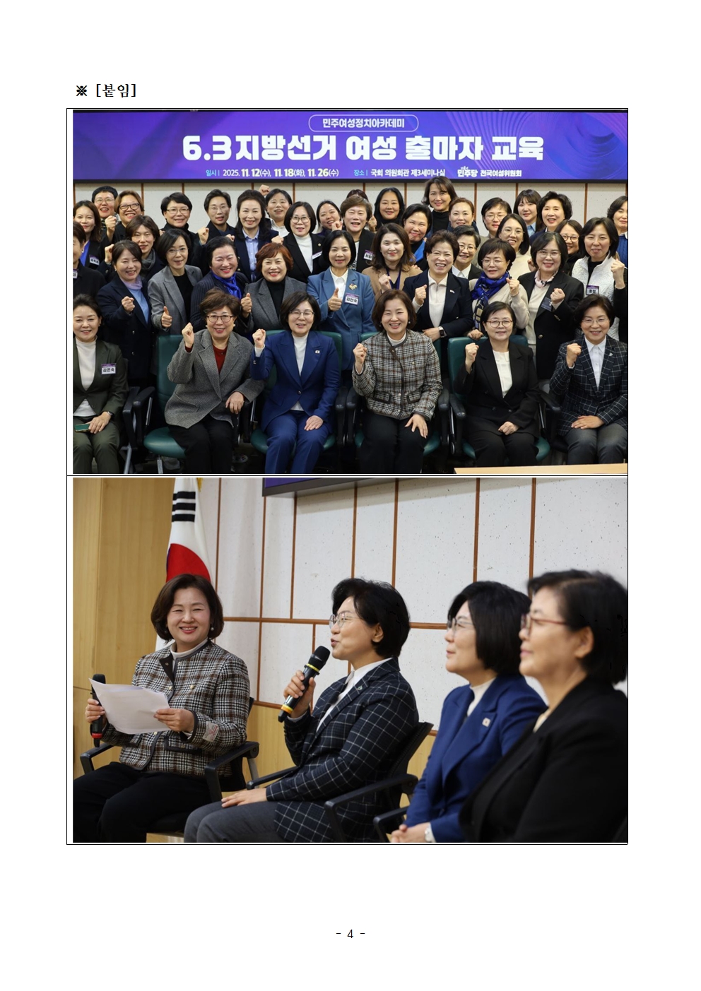 전국여성위원회, 6.3 지방선거 여성 출마 예정자 대상 2025 민주여성정치아카데미 보도자료