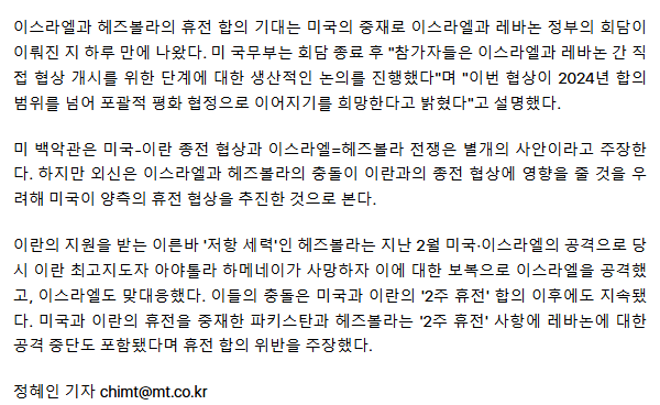 "이스라엘-레바논 곧 '휴전' 발표"… 미-이란 종전협상 청신호?
