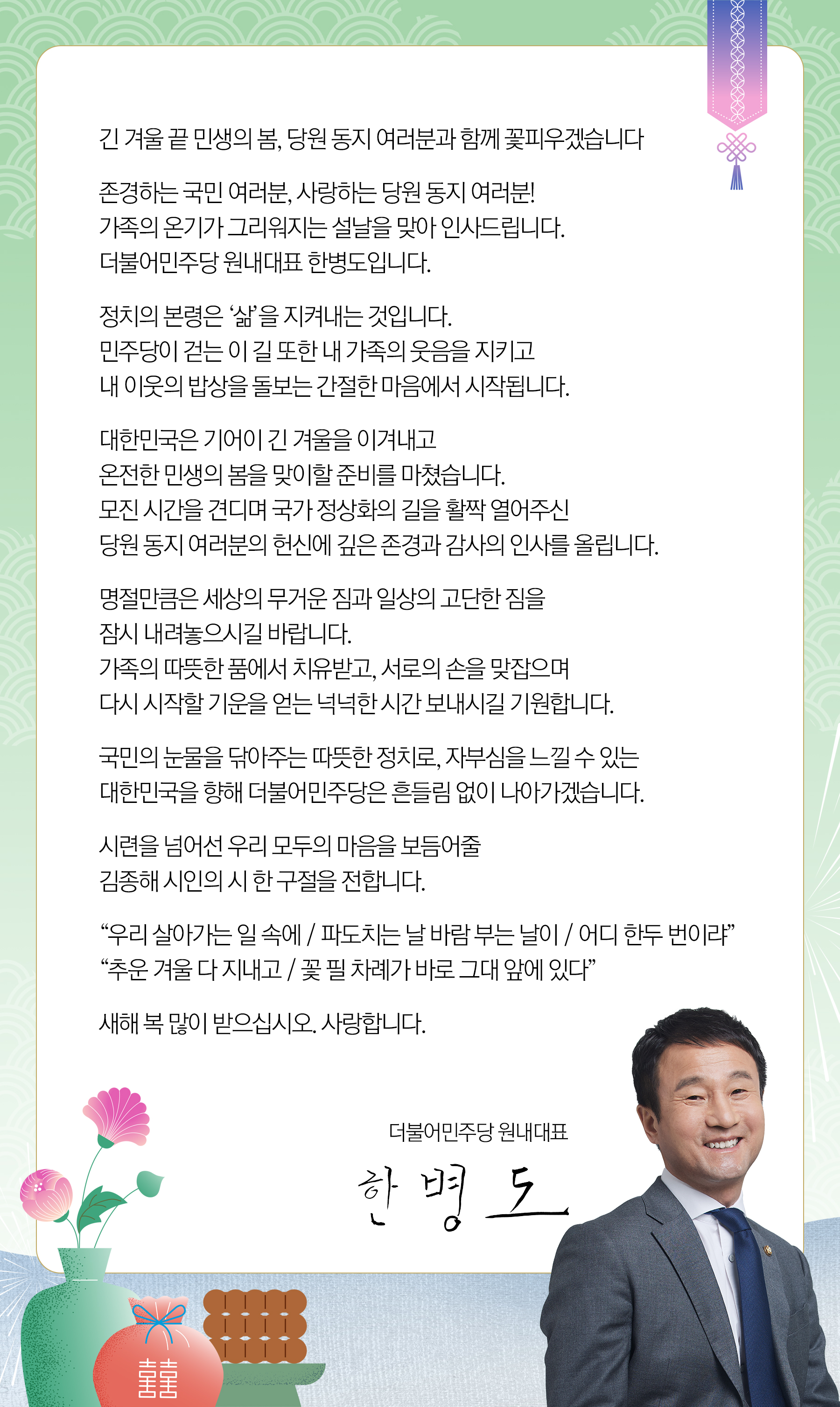 [월간민주 2월호] 당대표, 원내대표 설날 인사