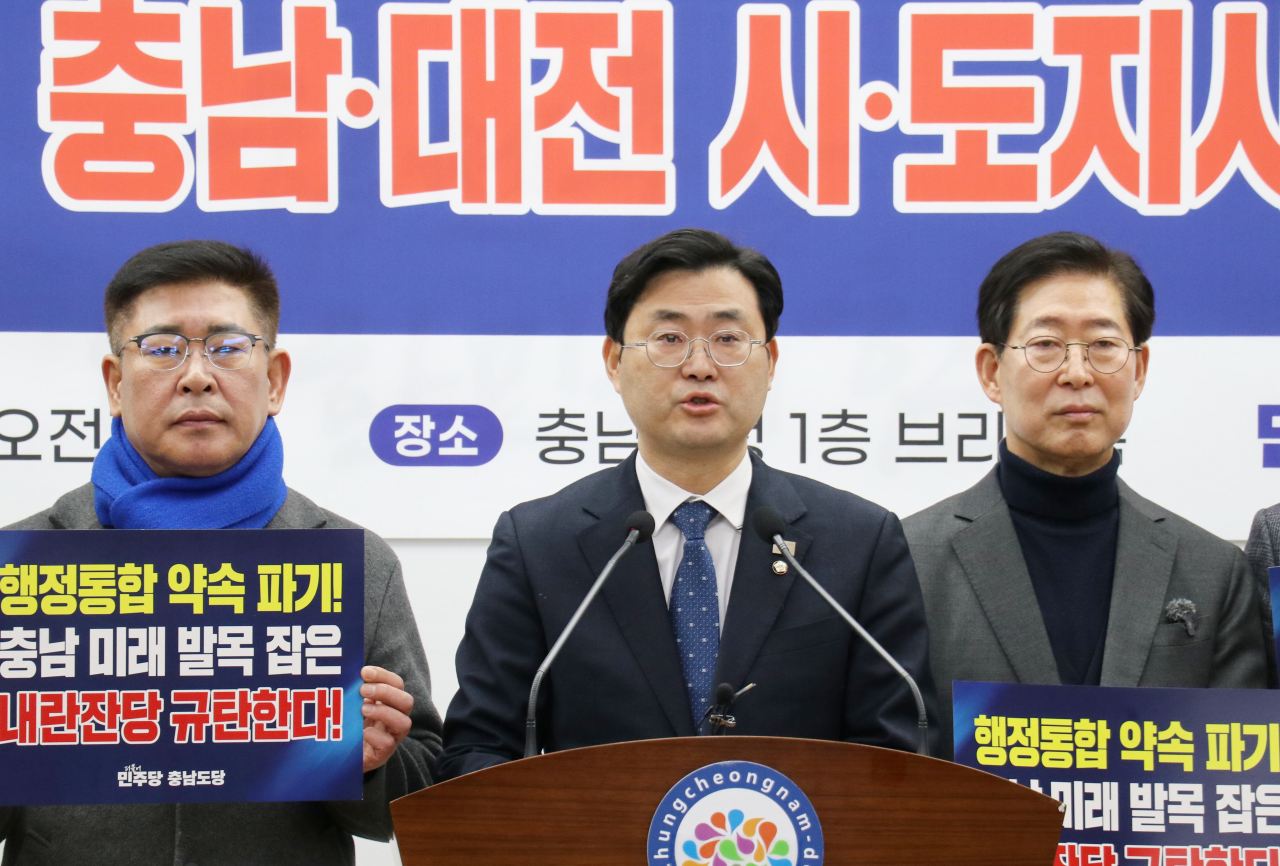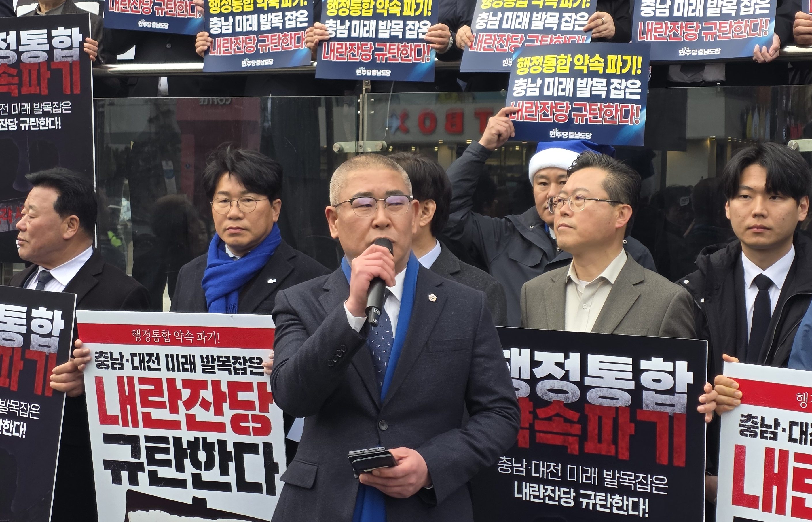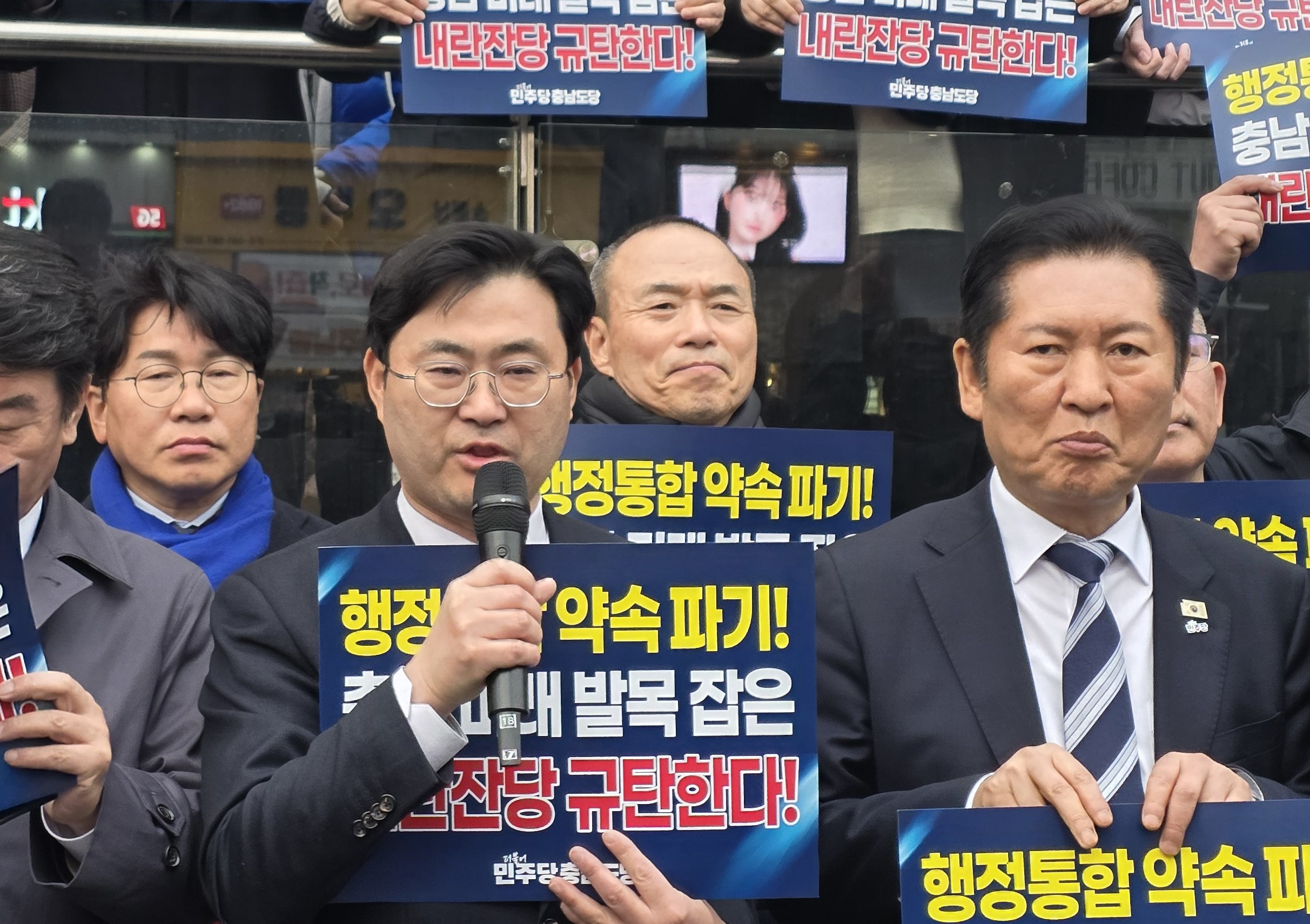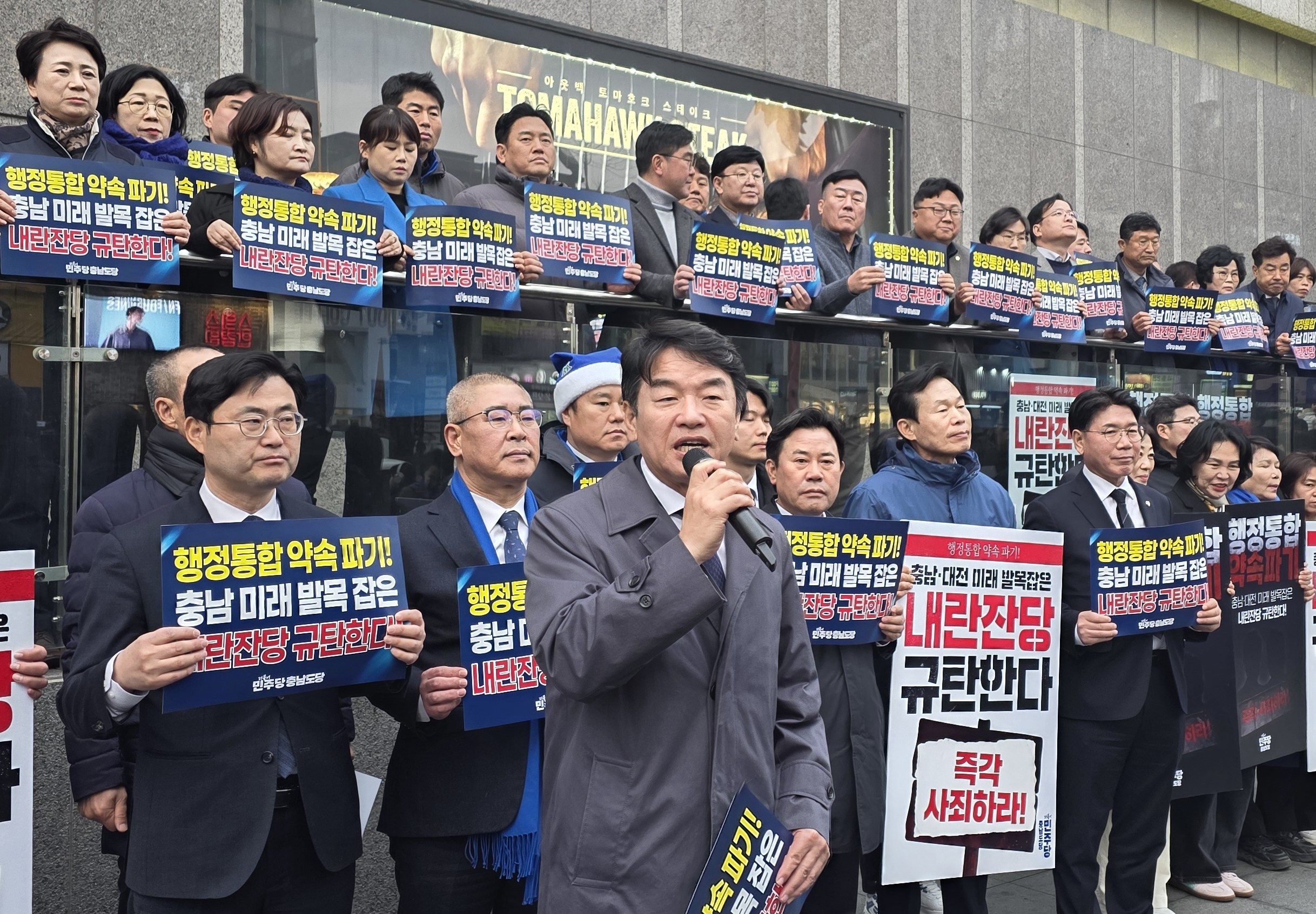 - 행정통합 약속 파기. 충남 미래 발목 잡는 국민의힘! 강력 규탄 기자회견
